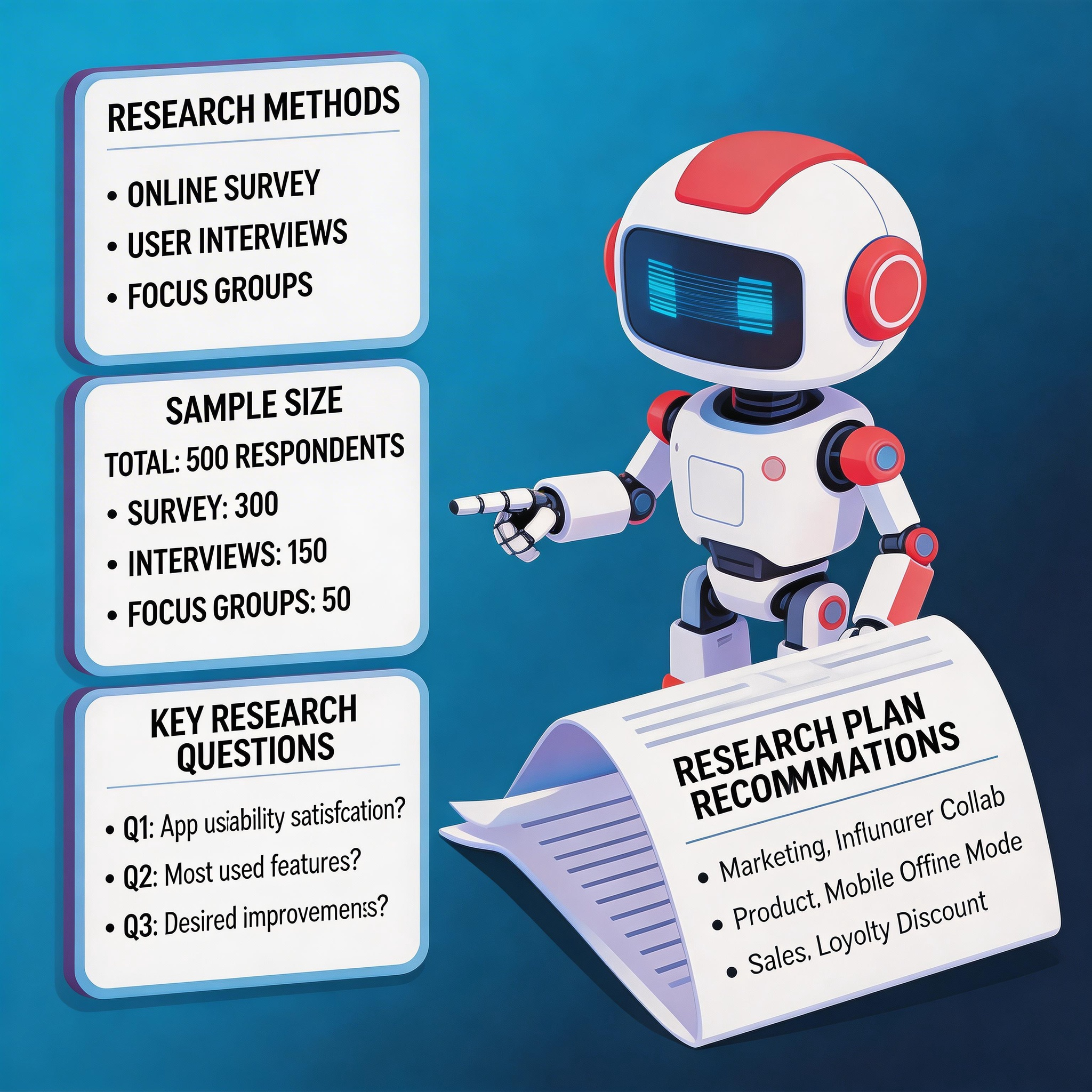 和 AI 顾问讨论调研方案的感觉很不一样,它会主动问你没想到的问题,帮你把调研需求想得更清楚、更完整。