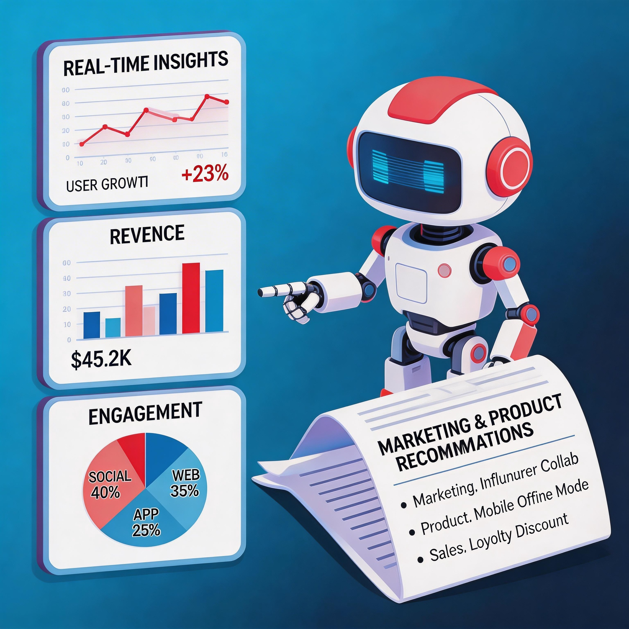 AI 解读数据背后的意义,提炼核心发现,给出具体可行的营销策略与产品迭代方向建议。